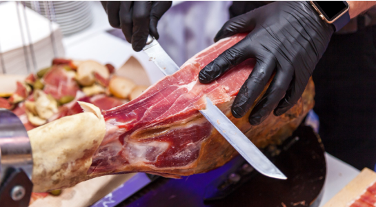 Nos especializamos en el corte a cuchillo, una técnica que no solo optimiza el rendimiento del jamón, sino que también potencia su sabor y textura.